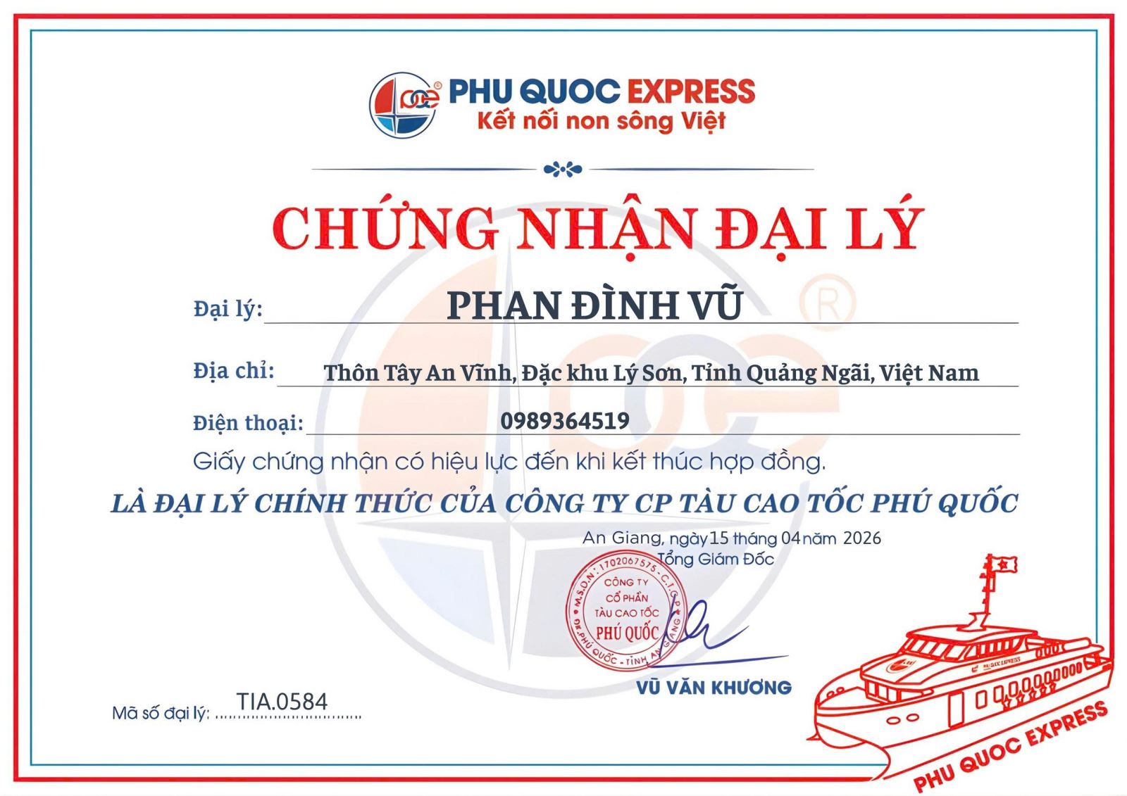 THÔNG TIN VỀ ĐẠI LÝ VÉ TÀU PHÚ QUỐC EXPRESS TẠI LÝ SƠN
