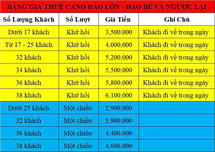 Giá Vé Canô từ Đảo Lớn đi Đảo Bé tại Lý Sơn